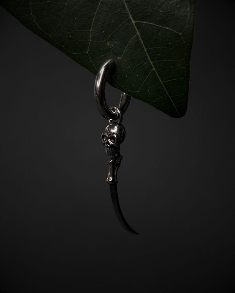 Skull Fang Drop Hoop Silver
