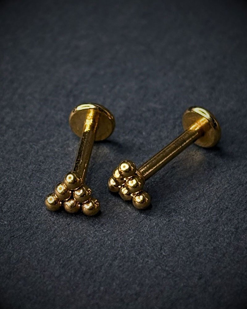 Built for daily comfort, the stud sits securely and feels lightweight once worn. The rounded back and balanced design make it suitable for cartilage, helix, ear, or nose piercings. It works great on its own as a statement piece or layered with plain studs and hoops for a stacked look that stays sharp and modern.