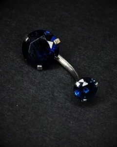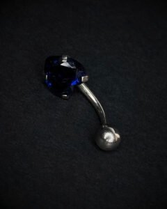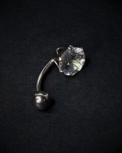 The Midnight Stone Belly Ring brings a clean, dark aesthetic with its deep black gem set in a simple metal frame. The faceted surface catches just a hint of light, giving the piece a subtle sheen without taking away from its overall minimal look. A small matching bead at the bottom keeps the design balanced and smooth.