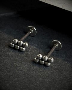 Lightweight and suspended from a small hoop, it moves naturally while staying comfortable for daily wear. Ideal for ear piercings, this piece works well on its own or layered with minimal studs for a modern, edgy style.